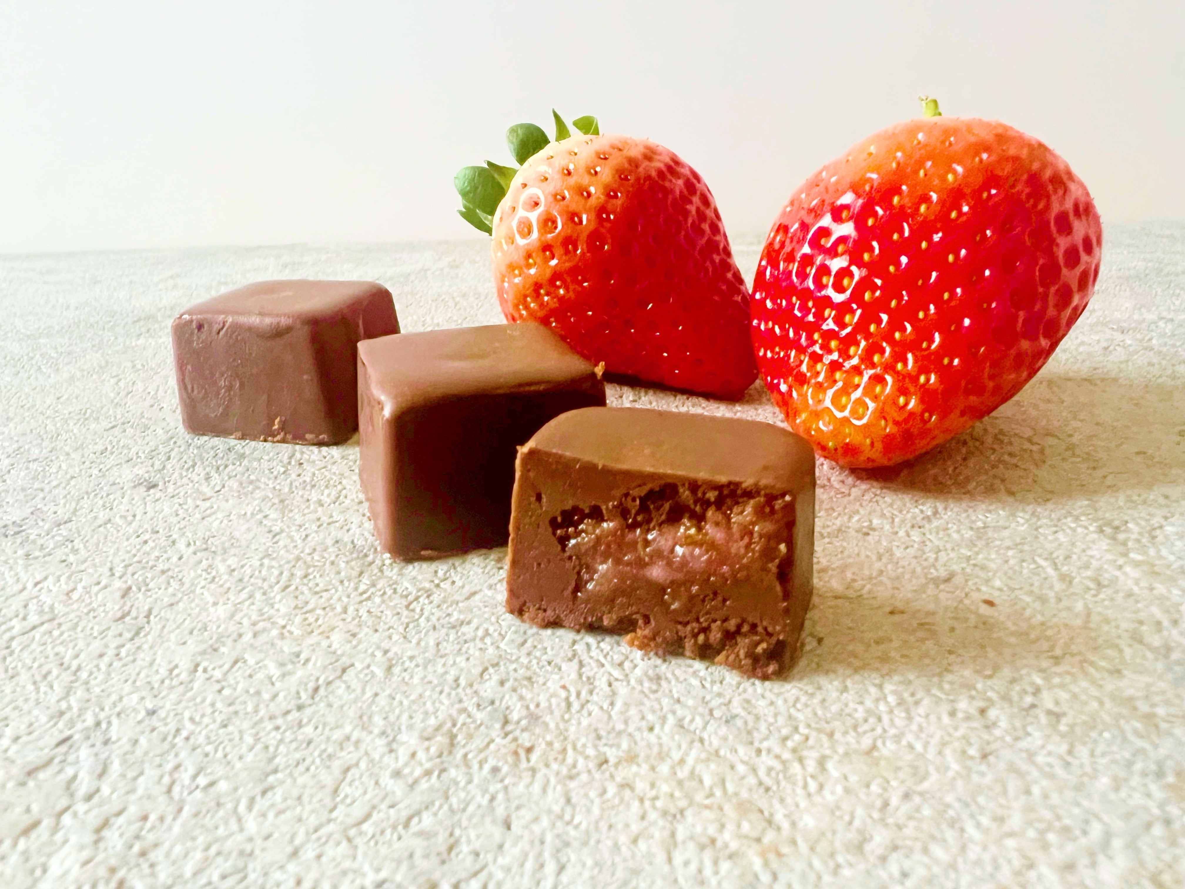 新潟県産の高級越後姫を贅沢に使用。フルーティーでほど良い酸味と、カカオの濃厚さが絶妙に絡み合っています。この一粒には、越後姫の上品な風味が詰まっており、心が豊かになるひとときを演出します。